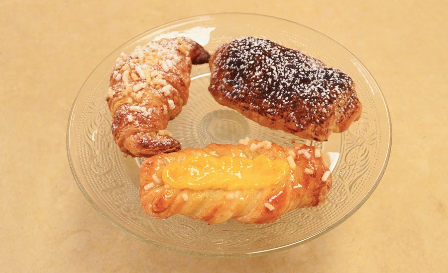 Paola ha preparato per l’esame finale del percorso una torta dal nome “Profumo d’Infanzia” e delle paste da colazione.