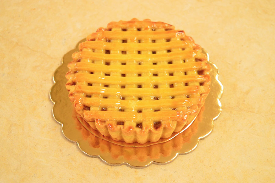 Frolla bianca con crema pasticcera e composta di mele arricchita con cannella, pinoli e uvetta.