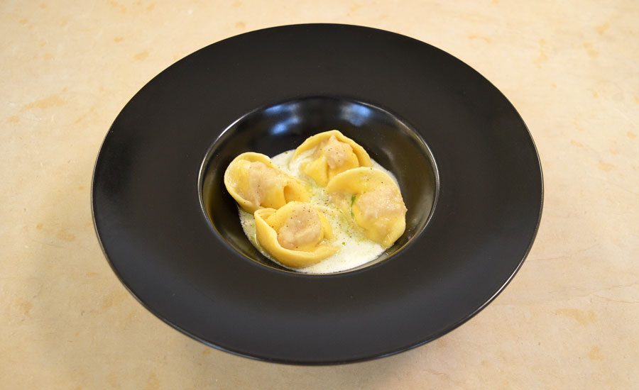 “Ho iniziato a lavorare con la pasta fresca fin da ragazzo, a 17 anni, nel ristorante di catering dove ho iniziato a prendere confidenza con la cucina. La mia esperienza sulla pasta ripiena mi ha dato la sicurezza per giocarmi questa preparazione alla fine del mio percorso”.