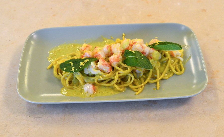 Suzana ha portato per di fronte la commissione d’esame un piatto dal nome Tonnarelli con Gamberi ed Asparagi.