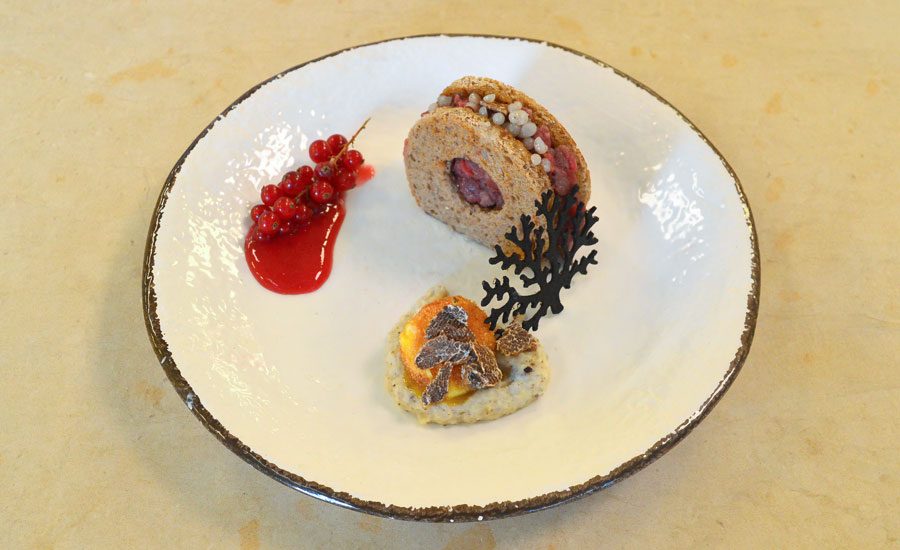 La Commissione: La Commissione d’Esame ha apprezzato la proposta per la sua identità territoriale e la cura nella combinazione degli elementi. Il piatto si distingue per l’equilibrio tra consistenze e sapori: la delicatezza della carne cruda, la cremosità della purea, la nota acidula del ribes e il tocco aromatico del tartufo creano un insieme armonioso e ricercato. La presentazione, ispirata alle tradizioni gastronomiche della provincia di Cuneo, esprime un forte legame con il territorio, dove l’utilizzo del tartufo rappresenta una parte importante della cultura culinaria locale. Nel complesso, il piatto dimostra sensibilità gastronomica, valorizzazione delle proprie radici e una piacevole interpretazione contemporanea della tradizione.