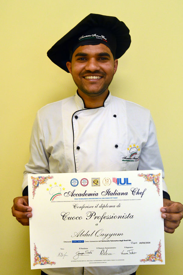 ABDUL QAYYUM – Diplomato del Corso di Cuoco Professionista