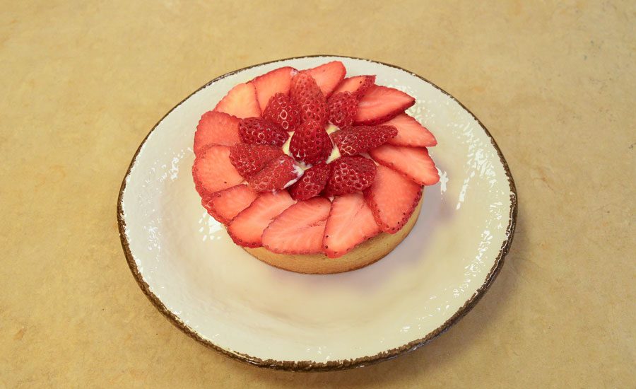 La Commissione: La candidata presenta il dessert Sorriso dell’Angelo, composto da base di pasta frolla, marmellata di fragole, fragole fresche, crema pasticcera e uno strato di crema diplomatica. Il dolce evidenzia una struttura classica ben organizzata e una buona esecuzione delle preparazioni di base della pasticceria. L’elaborato è ulteriormente arricchito da un’ispirazione personale e narrativa, che lega il piatto in modo significativo al percorso formativo della candidata.