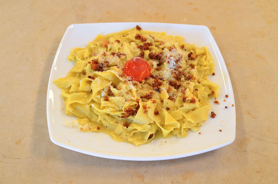 Abdul ha cucinato per la commissione in occasione dell’esame finale un piatto di Carbonara.