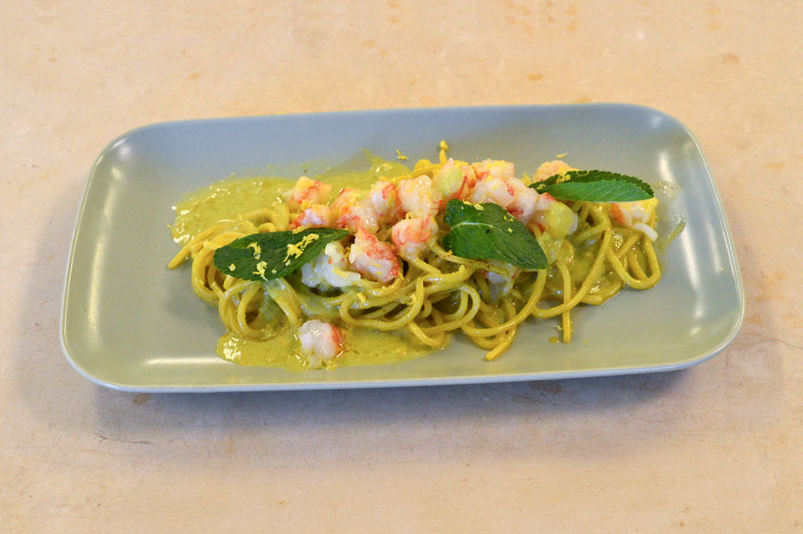 Suzana ha portato per di fronte la commissione d’esame un piatto dal nome Tonnarelli con Gamberi ed Asparagi.