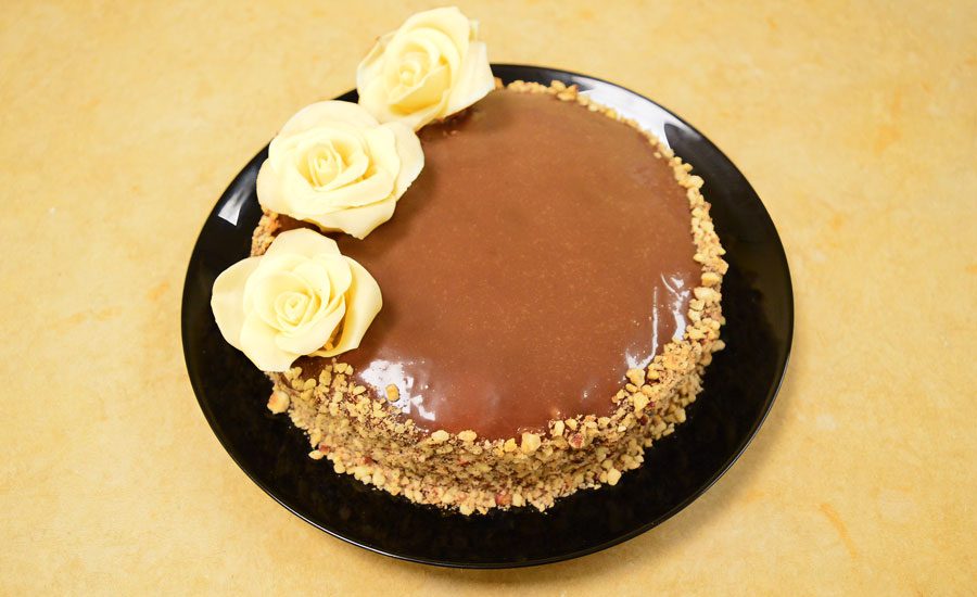 Pan di Spagna, crema inglese, mascarpone, panna semimontata, vaniglia, rum, gelatina, Nutella e noci.