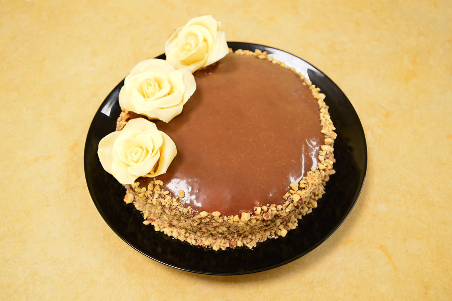 Pan di Spagna, crema inglese, mascarpone, panna semimontata, vaniglia, rum, gelatina, Nutella e noci.