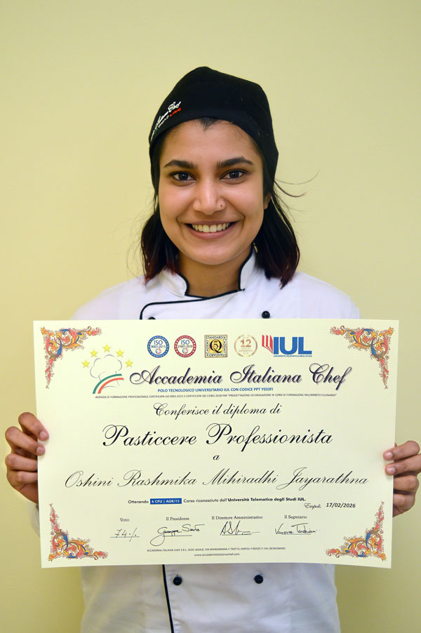 OSHINI RASHMIKA MIHIRADHI JAYRATHNA – Diplomata del Corso di Pasticcere Professionista