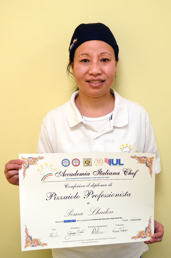 Nella sessione d’esame si sono diplomati anche 2 bravissimi pizzaioli: Andrea Entesano e Pema Lhaden ai quali sono stati riconosciuti i diplomi Accademici. I Neo Diplomati hanno dimostrato di aver raggiunto un ottimo livello di competenze professionali che gli consentiranno di affrontare con successo la carriera lavorativa futura. Il Diploma di Pizzaiolo Professionista è stato conseguito dagli allievi dopo un percorso di lezioni teorico-pratiche presso l’Accademia, uno stage di 200 ore presso una Pizzeria, al quale poi ha fatto seguito la prova d’esame. Il bagaglio di conoscenze appreso sarà ora necessario per entrare nel mondo del lavoro, sia in Italia che all’estero.