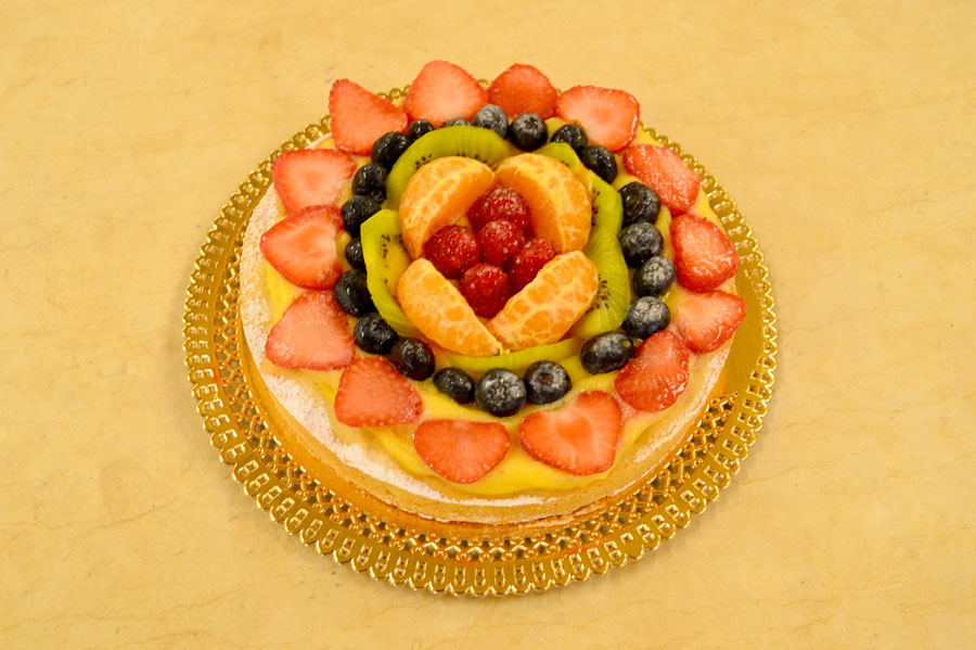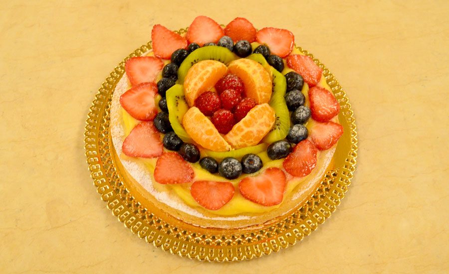 Pasta frolla con crema pasticcera e frutta fresca.