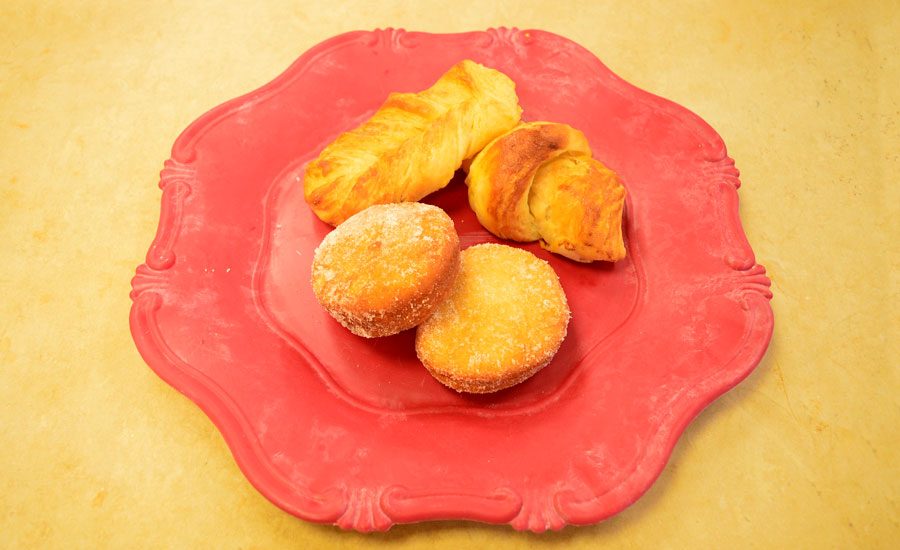 Leonardo ha realizzato per l’esame finale un dolce dal nome “Ceese Cake Goloso” con delle paste da colazione.