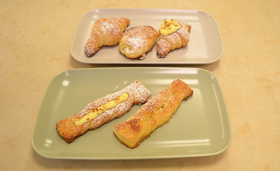 Lorenzo ha elaborato per l’esame conclusivo un dolce dal nome “Nuova Zuppa Inglese“ con delle paste da colazione.