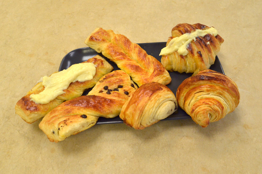 Denise ha elaborato per l’esame conclusivo una torta dal nome “7 Veli alla Nocciola” con delle paste da colazione.