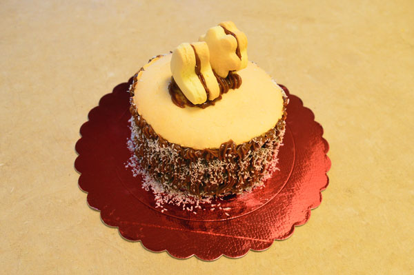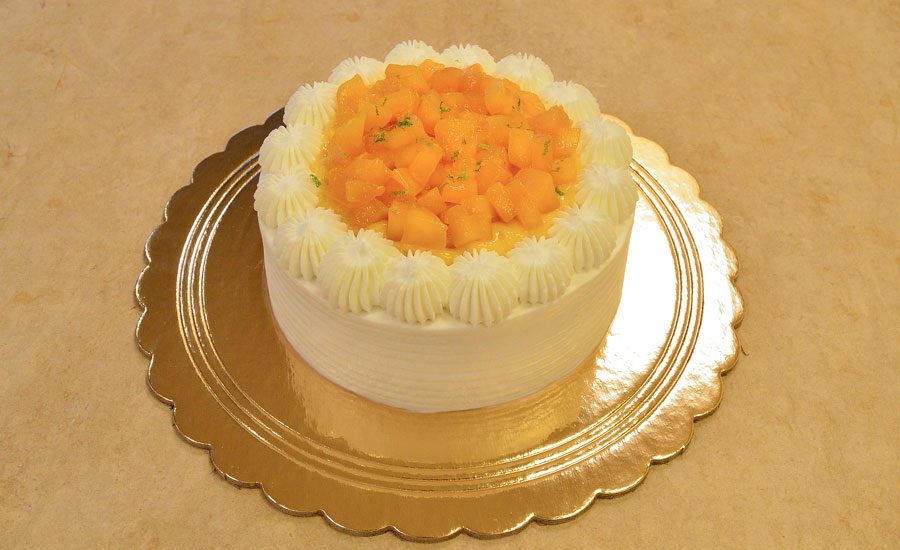 Cake di chiffon alla vaniglia, farcito con crema pasticcera al mango e crema pasticcera al cocco. Il dolce è ricoperto con una glassa a base di panna, zucchero, crema di formaggio ed essenza di cocco.