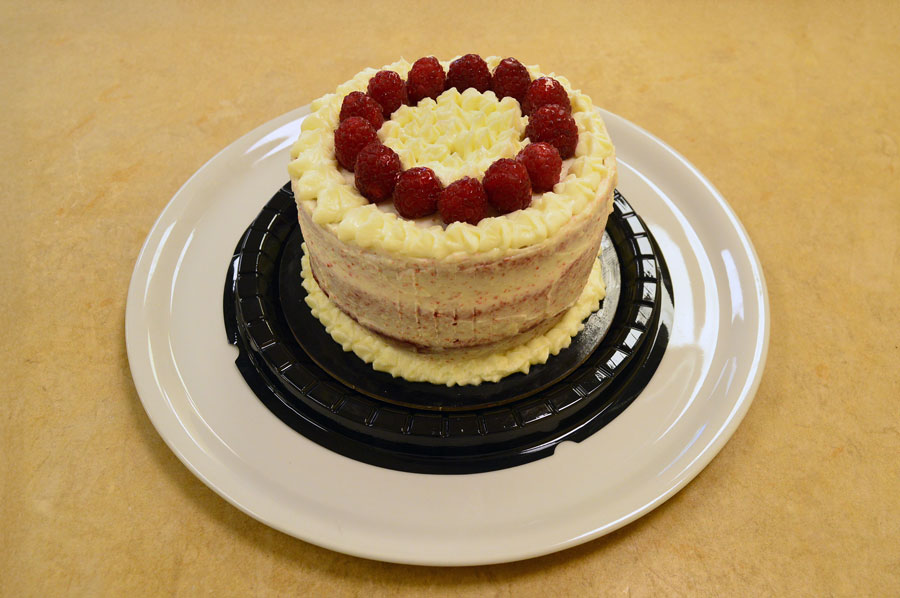 Base di pasta frolla, frangipane alle mandorle e crema delicata al mascarpone e cioccolato bianco, completata da una decorazione di lamponi freschi.