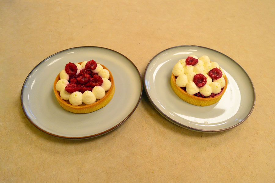 Melkam come piatto conclusivo ha preparato delle Tarte, Lampone e Cioccolato Bianco con delle paste da colazione.
