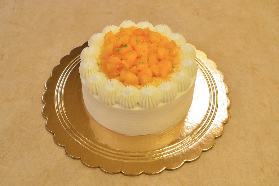 Cake di chiffon alla vaniglia, farcito con crema pasticcera al mango e crema pasticcera al cocco. Il dolce è ricoperto con una glassa a base di panna, zucchero, crema di formaggio ed essenza di cocco.