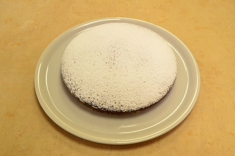 Torta gluten free realizzata con amido di riso e amido di mais, composta da pan di Spagna al cacao. Farcitura con crema spalmabile alla nocciola, pasta di nocciole e crema al mascarpone con zucchero a velo e panna.