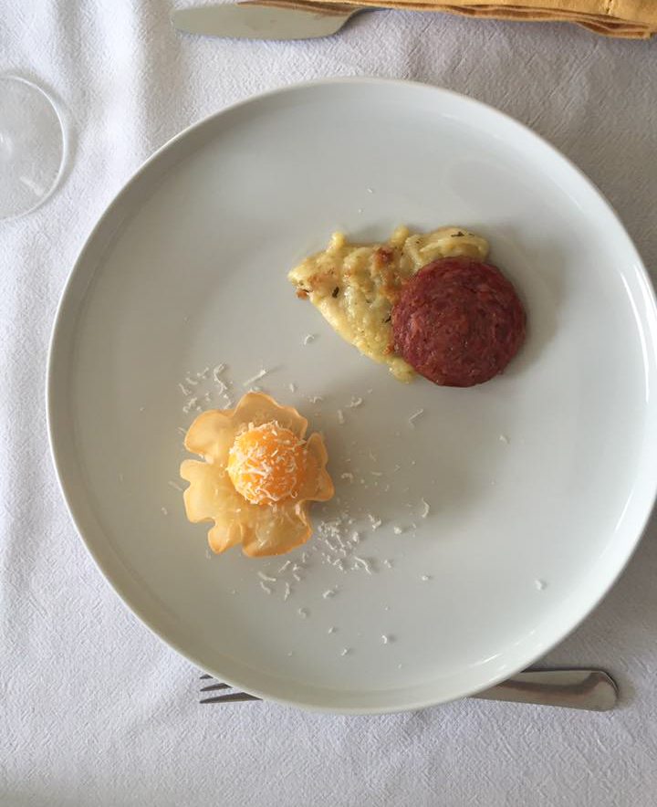 Mi chiamo Alessandro, ho 40 anni, da sempre faccio il musicista. Ho iniziato a suonare praticamente quando ero in prima elementare e ho trasformato una delle mie due grandi passioni in mestiere dall’età di 16 anni. Grazie alla musica ho girato il mondo, ho lavorato a fianco di artisti più o meno conosciuti. Ho passato gli ultimi 6 anni della mia vita in Italia suonando con Jerry Calà, Umberto Smaila, Ugo Conti, Sergio Vastano, Enzo Braschi, artisti che erano per me personaggi famosi di riferimento quando avevo 20 anni. L’altra mia grande passione è sempre stata la cucina. Dopo aver “vagato” per il mondo grazie alla musica prima e successivamente grazie a mia moglie, (con il suo lavoro ci trasferiamo spesso. Negli ultimi anni abbiamo vissuto in Belgio, Olanda e Etiopia) siamo arrivati di nuovo in Belgio nel 2015 e ho deciso che era il momento di trasformare la mia grande passione in mestiere. Ho cercato tra le varie scuole e l’Accademia Italiana Chef era quella che mi permetteva di fare corsi intensivi nel week end e quindi di poter tornare a Bruxelles durante la settimana. Quindi mi sono iscritto, all’inizio un po’ scettico per via delle poche lezioni, ma già dalla prima mi sono reso conto che il corso è davvero ben strutturato. Una delle quattro persone che devo ringraziare è lo Chef Francesco Tursi. Una persona splendida, con grande capacità comunicativa. Mi è stato davvero di grande aiuto. Dopo il corso sono partito immediatamente per lo stage. La sede di Milano mi ha proposto la “Locanda del Pilone” ad Alba. Io, abitando lontano, non avevo problemi a lavorare in un ristorante lontano da casa e “full time”. Quindi, nonostante la paura di non essere in grado di affrontare la situazione (la Locanda del Pilone è un fantastico ristorante con una stella Michelin), sono partito. E qui ho incontrato le altre tre persone cui devo davvero tutto. Ho avuto la fortuna di arrivare al ristorante quando ancora era in fase di apertura quindi ho passato i primi 10 giorni ad osservare le preparazioni, la scelta del menu e le varie prove. Alla Locanda era arrivato un nuovo chef, più giovane di me, pieno di entusiasmo ed esperienza. Da subito mi hanno messo a mio agio, mi hanno fatto sentire parte della brigata facendomi partecipare attivamente alle preparazioni, chiedendomi anche pareri. Per me è stata un’esperienza che ha cambiato radicalmente il mio modo di pensare alla cucina. Gli Chef Federico Gallo, Luca Bendinelli e il Capo Partita Umberto Rizzi mi hanno insegnato tantissimo in poco tempo. Sono stati fondamentali e soprattutto sempre molto disponibili.