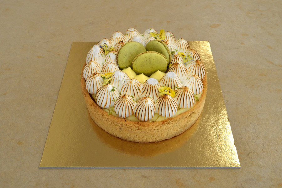 Fatima ha presentato una linea di paste da colazione ben alveolate e caratterizzate da un sapore molto raffinato. “Delice Mimi” è invece il nome della sua creazione costituita da una base di pasta frolla aromatizzata con scorse di limone, dacquoise, crema pasticcera al limone, meringa italiana e macarones e fiori di viola del pensiero come decorazione. Una torta ben riuscita, molto equilibrata nei sapori e ricca di consistenze.