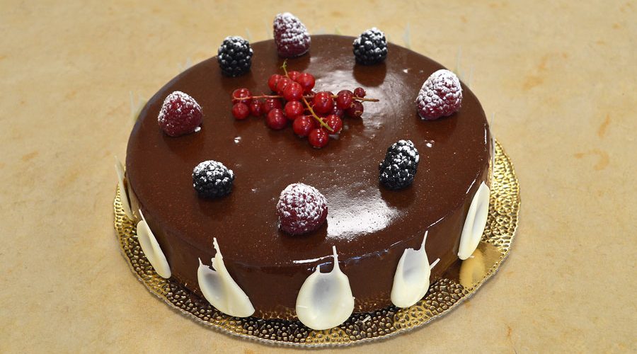 Togliere il dolce dallo stampo e adagiarlo su una griglia con sotto una placca da forno. Scaldare la glassa, setacciarla e utilizzarla a 36° C esatti, colare sul dolce e scuotere leggermente la griglia in modo che l’eccesso possa cadere sotto. Trasferire il dolce su un piatto da portata con l’aiuto si una spatola. Decorare a piacere. Lasciare scongelare in frigorifero circa 8 ore prima di servire.
