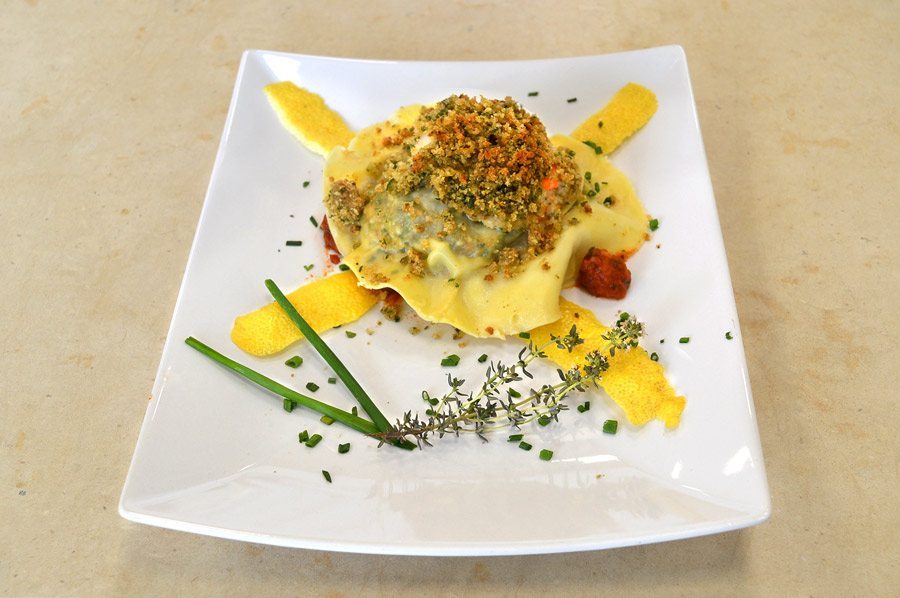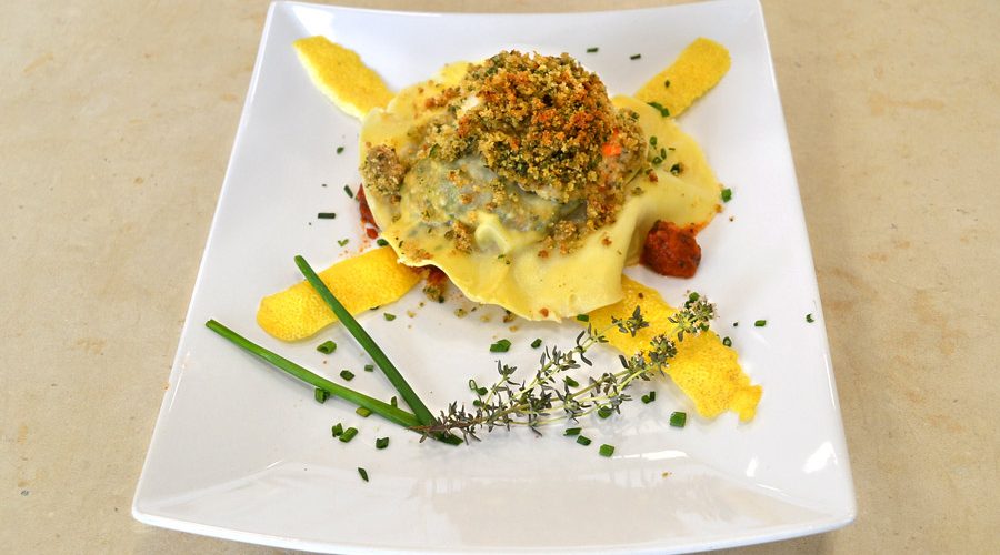 CORSO CUOCO PROFESSIONISTA | RAVIOLONE DI GAMBERI CON CAPASANTA GRATINATA