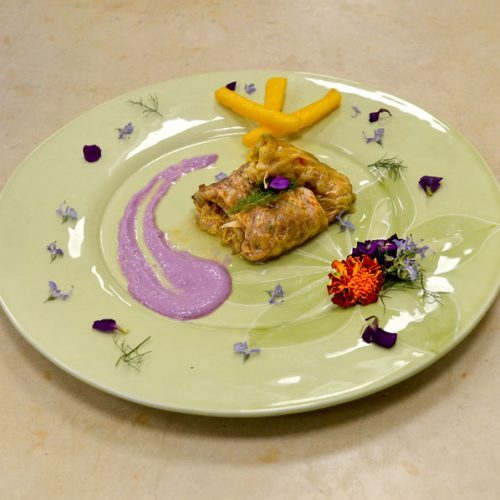 Per il ripieno: Tagliate a dadini piccolissimi le cipolle e fatele appassire con un cucchiaio di olio d’oliva, grattugiate la carota, tostate il riso, pulite i porcini, tagliateli a cubetti piccoli e fateli saltare con olio, finocchietto selvatico, sale e pepe. Una volta raffreddate le cipolle e i funghi amalgamate tutti gli altri ingredienti e salate a piacere. Prendete la verza e private ogni foglia della parte centrale e dura ottenendo così 2 pezzi da ciascun foglia intera. Riempite ogni foglia con il ripieno, formando una polpetta in mezzo, giratela su se stessa chiudendo bene le estremità. Si mettono a bollire 30-40 min coprendo bene con brodo vegetale a fuoco basso.