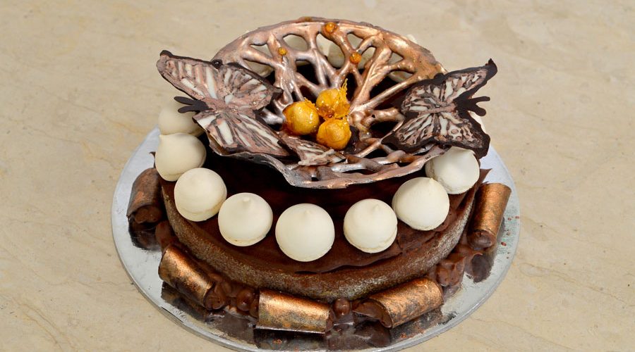La crema raffreddata a 40°C, unitela al cioccolato fondente (tagliato a pezzi) e al burro sciolto, aiutatevi con una frusta e continuate a mescolare fino a quando il cioccolato non si è completamente sciolto. Dopo versate la crema al cioccolato in un recipiente e copritela con la pellicola: fate in modo che la pellicola sia a diretto contatto con la superficie della crema in modo che non si crei la pellicina.