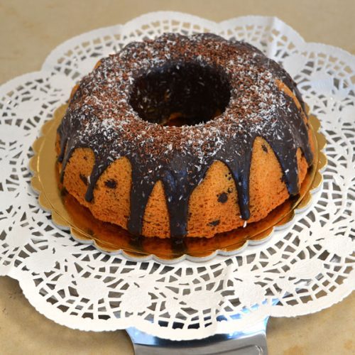 Decorare con del cocco disidratato e dei riccioli di cioccolato.