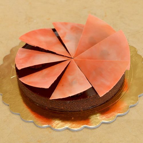 Per la frolla: Pesare separatamente gli ingredienti; Ammorbidire il burro a 25°, aggiungervi le uova, zucchero a velo, polvere di mandorle in una planetaria munita di foglia. Legare il tutto con la prima quantità di farina e terminare con la farina restante setacciata insieme al cacao. Far riposare in frigorifero almeno 6 ore. Stendere la frolla a 2,5 mm di spessore e coppare. Far riposare nuovamente per 15 min in frigorifero. Cuocere in forno ventilato a 160° a valvola aperta per 19-21 min.