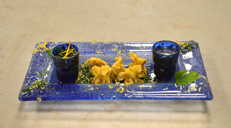FAGOTTINI DI SFOGLIA ALL’UOVO, CON RIPIENO ALL’OSSOBUCO, MANTECATI IN DEMI-GLACE AROMATIZZATA ALLA GREMOLADA