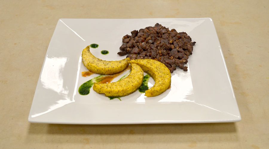Rosolare l’aglio e la cipolla in una capiente padella a fuoco vivace, con il burro, il lardo e l’olio, aggiungendo poi le foglie di alloro e rosmarino. Quando l’aglio sarà imbiondito aggiungiamo il trito di carne aiutandoci con una forchetta per sbriciolarlo. Regolarlo poi di sale, macinando il pepe e unendo infine i chiodi di garofano. Quando la carne sarà quasi asciutta e ben sgranata aggiungere mezzo litro di vino rosso forte. Cuocere per circa due ore e poi servire, accompagnandolo con della polenta.
