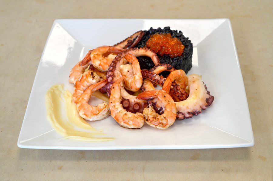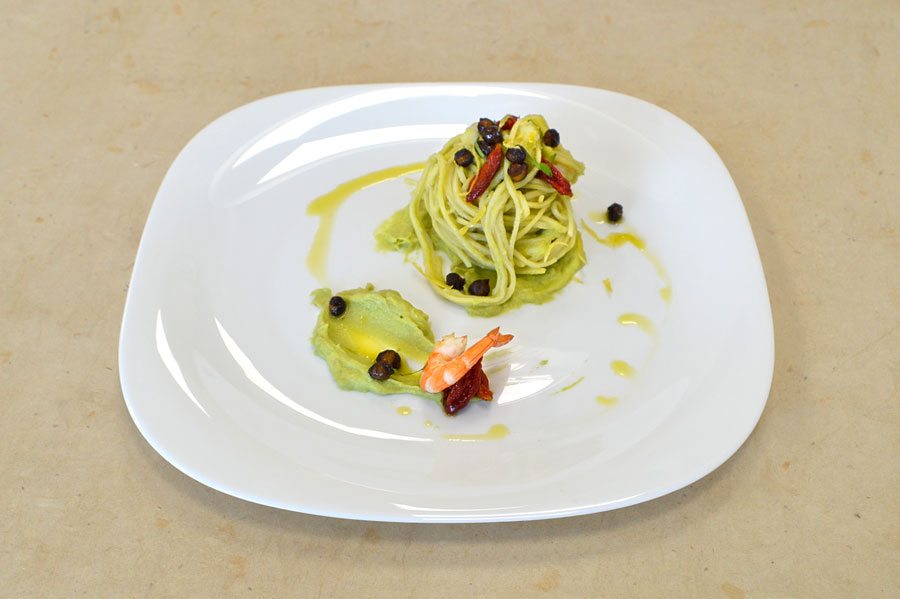 CORSO DI CUOCO PROFESSIONISTA | PRIMO PIATTO CHITARRE AL NERO DI SEPPIA CON CODE DI MAZZANCOLLE E TRIS DI VERDURA IN SALSA BURRATA. DI MANOEL BIADIGO DIPLOMATO CORSO DI CUOCO PROFESSIONISTA