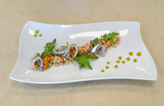 CORSO DI CUOCO PROFESSIONISTA| PRIMO PIATTO CEVICHE DI ALICI D’ESTATE DI DONATELLA D’AGOSTINO DIPLOMATA CORSO DI CUOCO PROFESSIONISTA INGREDIENTI PER 4 PERSONE: Ingredienti base: – 200gr di farro – 300gr