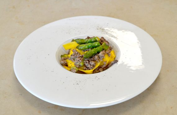 CORSO PER DIVENTARE CUOCO| PRIMO PIATTO PAPPARDELLE AL RAGÙ D’ANATRA ED ASPARAGI DI FILIPPO MARIA FRATTI DIPLOMATO CORSO DI CUOCO PROFESSIONISTA INGREDIENTI PER 4 PERSONE: Ingredienti per il piatto: – 1 petto