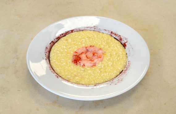 RISOTTO AGLI AGRUMI CON CARPACCIO DI GAMBERO ROSSO E SAPA DI MIELE