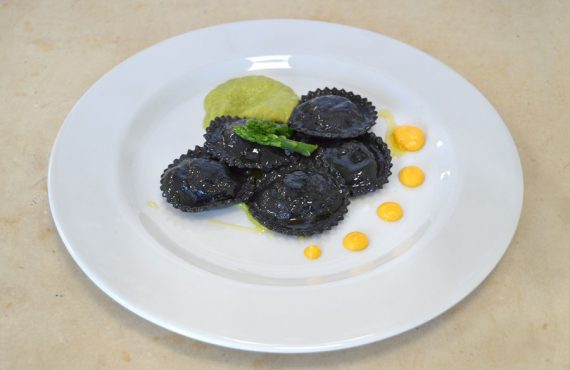 RAVIOLI AL NERO DI SEPPIA CON RIPIENO DI PESCE