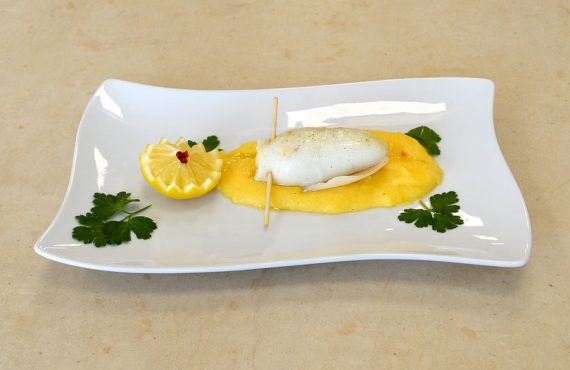 CORSO PER CUOCO | SECONDO PIATTO CALAMARO RIPIENO IN UN LETTO DI CREMA DI MAIS DI FRANCESCA BOSCOLO MARCHI DIPLOMATA CORSO DI CUOCO PROFESSIONISTA INGREDIENTI PER 4 PERSONE: Ingredienti per