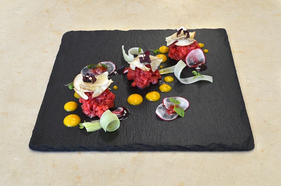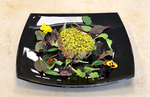 CORSO CUOCO PROFESSIONISTA | SECONDO PIATTO FILETTO DI MANZO IN CROSTA DI PISTACCHI, OLIO ALLA MENTA E INSALATINA DI CRESCIONI DI FRANCESCO GAROFALO DIPLOMATO CORSO DI CUOCO PROFESSIONISTA INGREDIENTI PER 4 PERSONE: