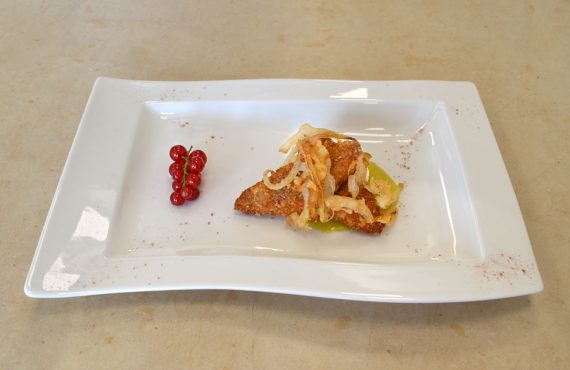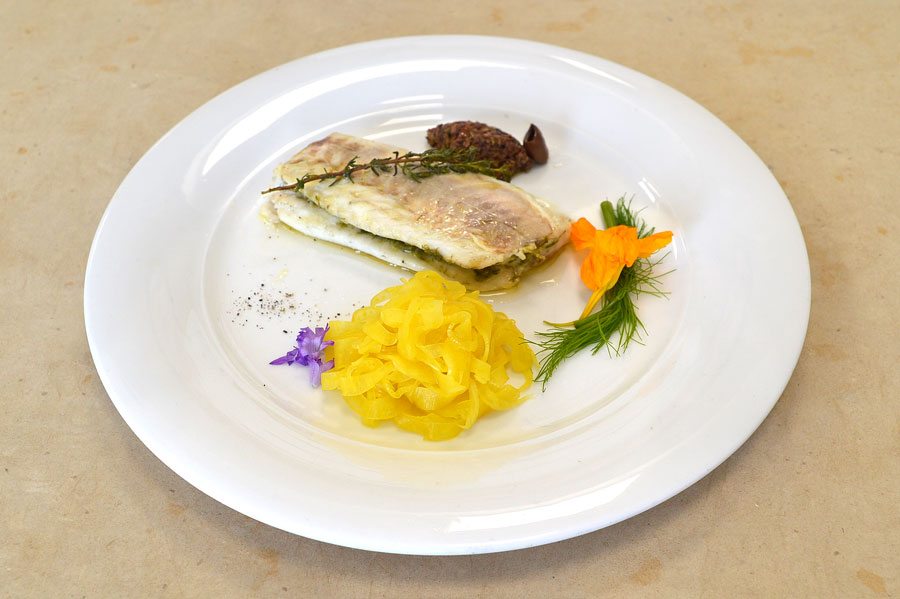 CORSO CUCINA | SECONDO PIATTO FILETTI CROCCANTI DI TRIGLIA DI SCOGLIO SU VELLUTATA DI PORRI DI ENRICO SALLUSTRO DIPLOMATO CORSO DI CUOCO PROFESSIONISTA INGREDIENTI PER 4 PERSONE: Ingredienti base: – 4