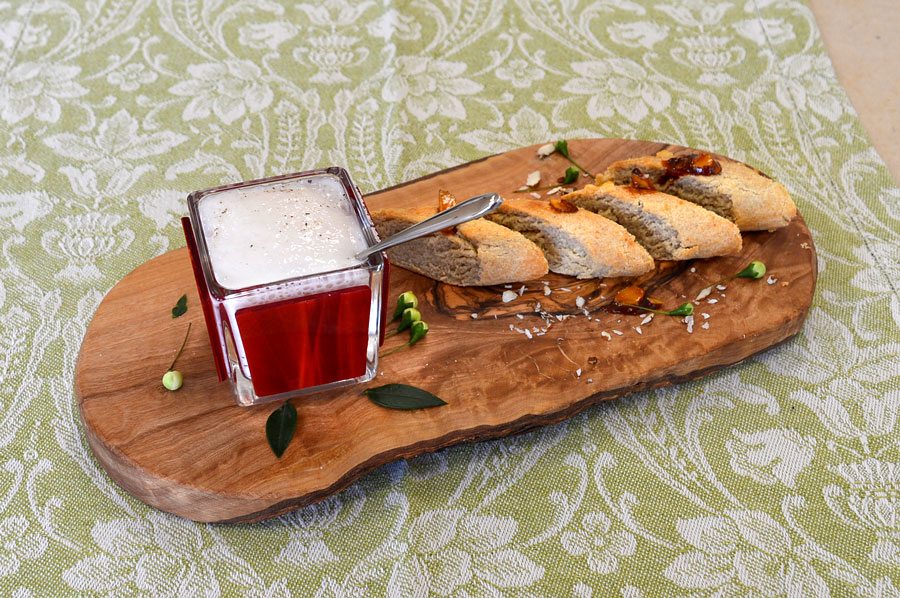 CORSO DI CHEF| DESSERT I CANTUCCI CON SPUMA DI LATTE DI MANDORLE DI ANNA GIULIA CATENI DIPLOMATA CORSO DI CHEF PROFESSIONISTA INGREDIENTI PER 4 PERSONE: Ingredienti base: – Burro Bavarese