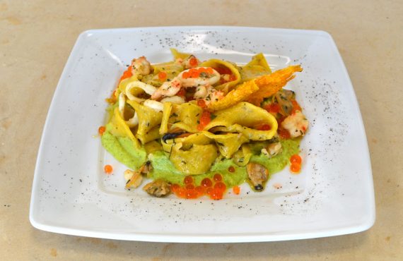SCIALATIELLI AI FRUTTI DI MARE SU VELLUTATA DI ZUCCHINE