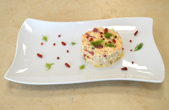 CORSO DI CUOCO | SECONDO PIATTO TORTINO DI GNOCCHI CON SALMONE FINOCCHIO VODKA BACCHE DI GOJI DI SAMANTHA LARIBLE LOV DIPLOMATA CORSO DI CUOCO PROFESSIONISTA INGREDIENTI PER 4 PERSONE: Ingredienti