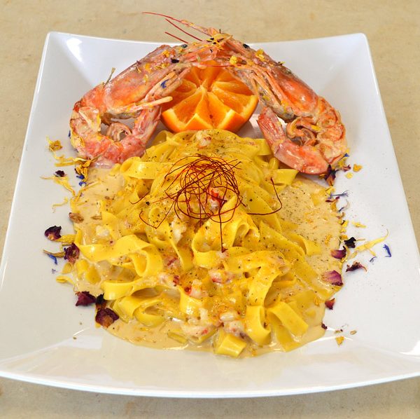 CORSO CUCINA | PRIMO PIATTO TAGLIATELLE CON GAMBERI PROFUMATE ALL’ARANCIA DI LUIGI PASQUALE ZAMPINO DIPLOMATO CORSO DI CUOCO PROFESSIONISTA INGREDIENTI PER 4 PERSONE: – 400 g Tagliatelle – 10 Gamberi – 4 arancia – 250