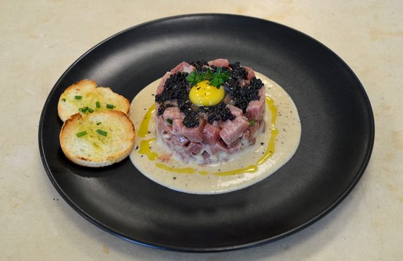 CORSO CUCINA | SECONDO PIATTO TARTARA DI TONNO ROSSO DELL’ADRIATICO SU VELLUTATA DI FAGIOLI BORLOTTI ANDREA BONALDI DIPLOMATO CORSO DI CUOCO PROFESSIONISTA INGREDIENTI PER 4 PERSONE: Ingredienti : – 200gr di fagioli