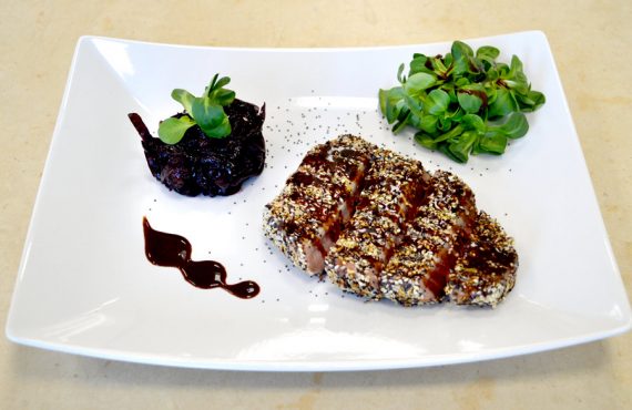 CORSO CUOCO | SECONDO PIATTO TONNO ALL’ACETO BALSAMICO CON CHUTNEY DI CIPOLLA ROSSA DI RICCARDO BARILE DIPLOMATO CORSO DI CUOCO PROFESSIONISTA INGREDIENTI PER 4 PERSONE: Ingredienti Chutney di cipolle : –