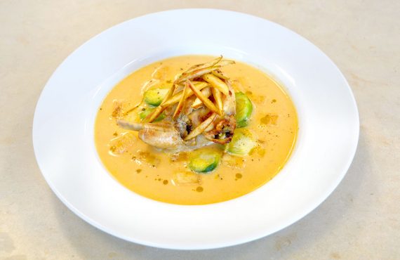 PRIMO PIATTO CORSO CUCINA | CREMA DI ZUCCA GIALLA CON COSCIA DI CONIGLIO RIPIENA, CAVOLETTI DI BRUXELL E JULIENNE DI MELA ANNUCA DI LUCA DI PILATO DIPLOMATO CORSO DI CUOCO PROFESSIONISTA INGREDIENTI