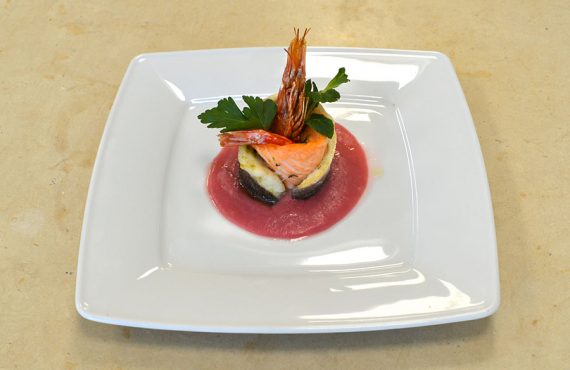 CORSO CUOCO | SECONDO PIATTO ABBRACCIO SPIGOLA SALMONE GAMBERO ARGENTINO CON SALSA RAPA ROSSA DI AIZABEL LASTIMOZA DIPLOMATA CORSO DI CUOCO PROFESSIONISTA INGREDIENTI PER 4 PERSONE: Ingredienti Per l’Abbraccio: – 4