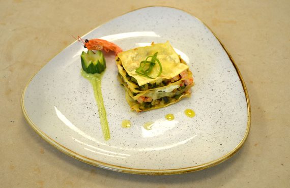 CORSO CUCINA | PRIMO PIATTO LASAGNETTE DI ZUCCHINE A GAMBERO ROSSO DI LORENZO CIRULLI DIPLOMATO CORSO DI CUOCO PROFESSIONISTA INGREDIENTI PER 4 PERSONE: -250gr di zucchine -250gr gambero rosso/scampi -1 burrata -500gr sfoglie all’uovo per