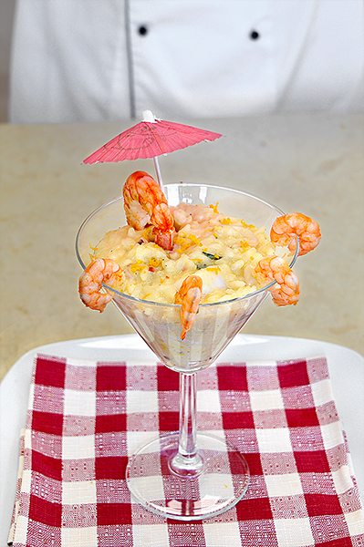 CORSO CUCINA | PRIMO PIATTO COCKTAIL DI RISO ALL’ARANCIA CON FRUTTI DI MARE E MENTA FRESCA DI GIUSEPPE ZARBO DIPLOMATO CORSO DI CUOCO PROFESSIONISTA INGREDIENTI PER 4 PERSONE: – 400 gr